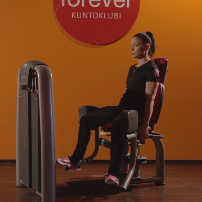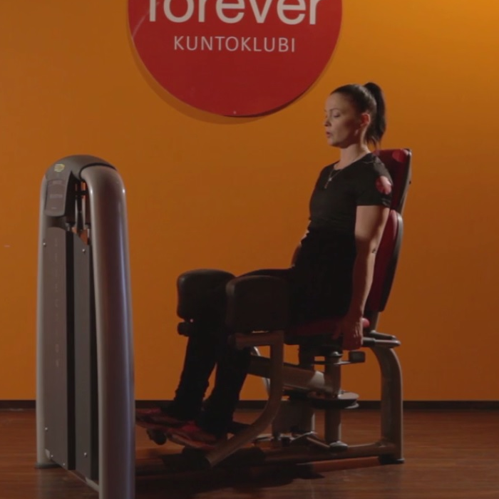 Istu nojaten selkänojaan. Laita jalat tukien väliin ja pidä kiinni kevyesti kahvoista. Avaa jalat sivuille niin auki kuin pystyt. Palauta hitaasti ja hallitusti takaisin yhteen.