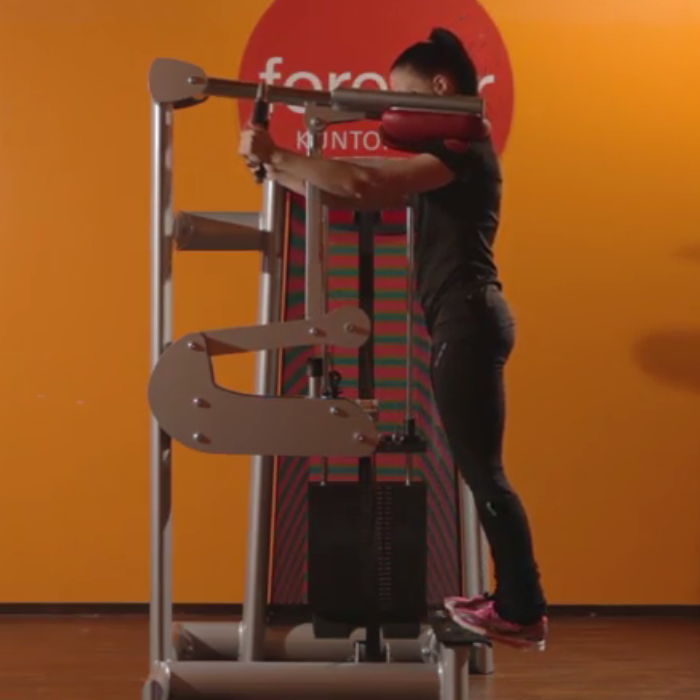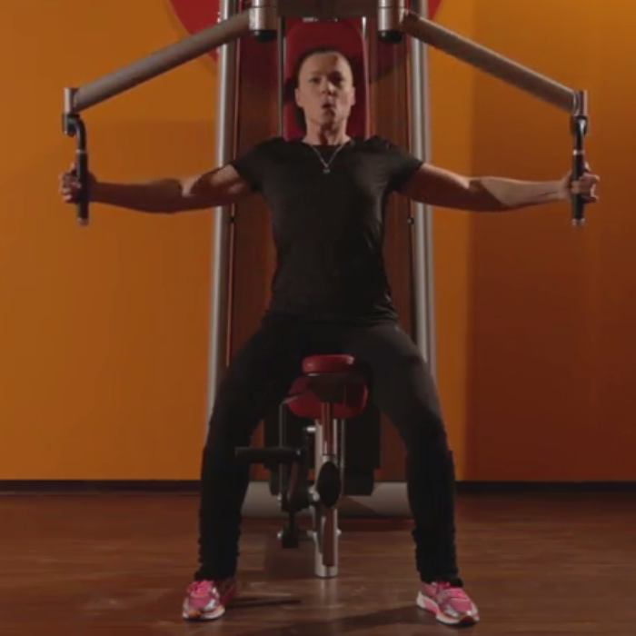 Vedä hartiat taakse ja rutista lapaluut yhteen. Souda kyynärpäät kylkien vierestä taakse. Pidä rinta kiinni pehmusteessa koko ajan.
