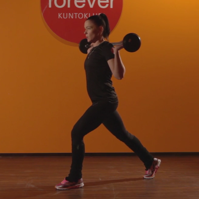 Ota riittävän pitkä askel eteen tai taakse. Paino etujalalle, mutta älä päästä asentoa kallistumaan eteen, vaan pidä selkä suorana ja pystyssä. Ponnista takaisin alkuasentoon.