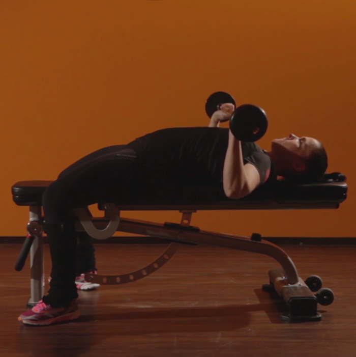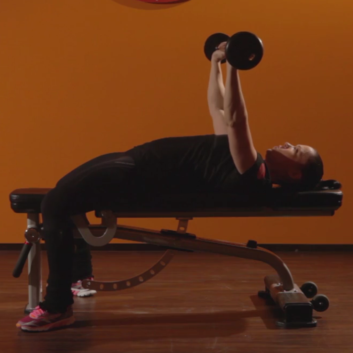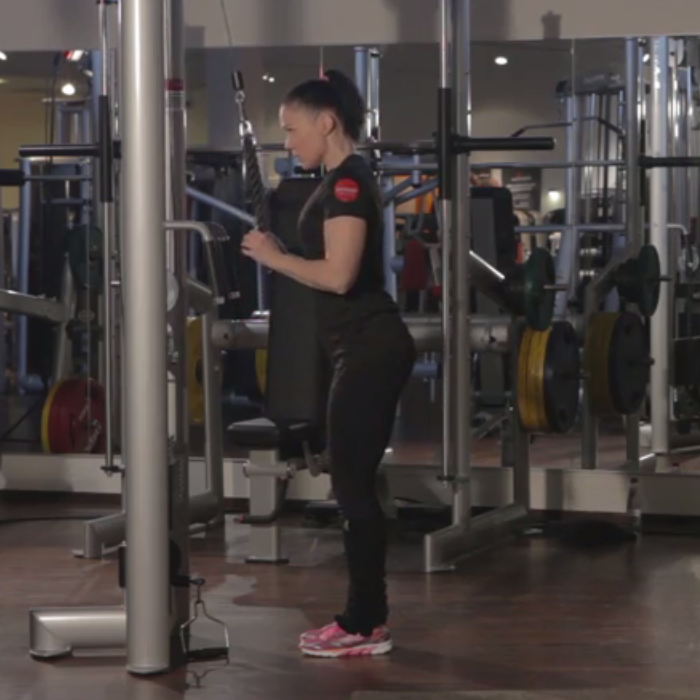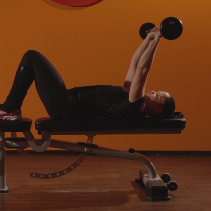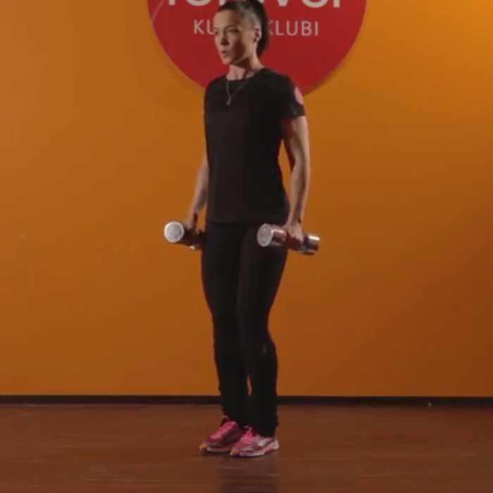 Pidä selkä suorana ja keskivartalo tiukkana. Pyri pitämään vartalo mahdollisimman paikoillaan. Nosto ja rauhallinen palautus. Katso myös meidän helppo käsitreeni aloittelijalle!