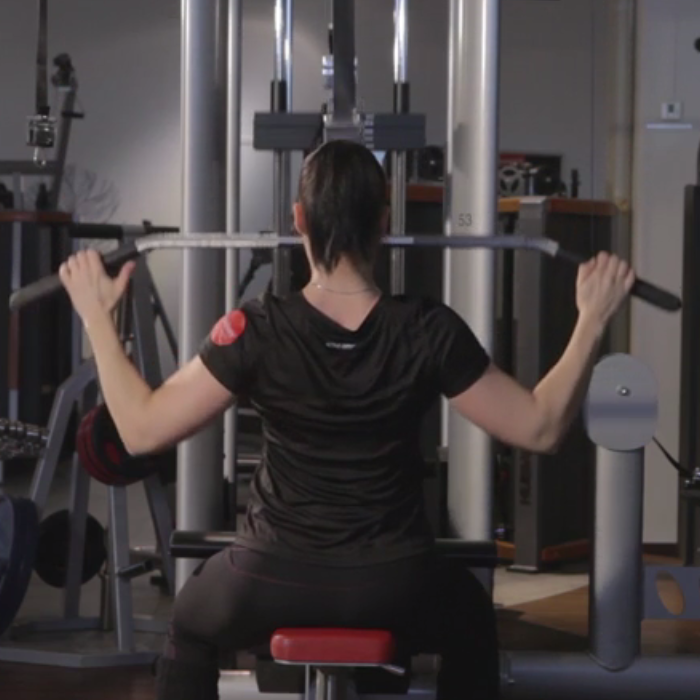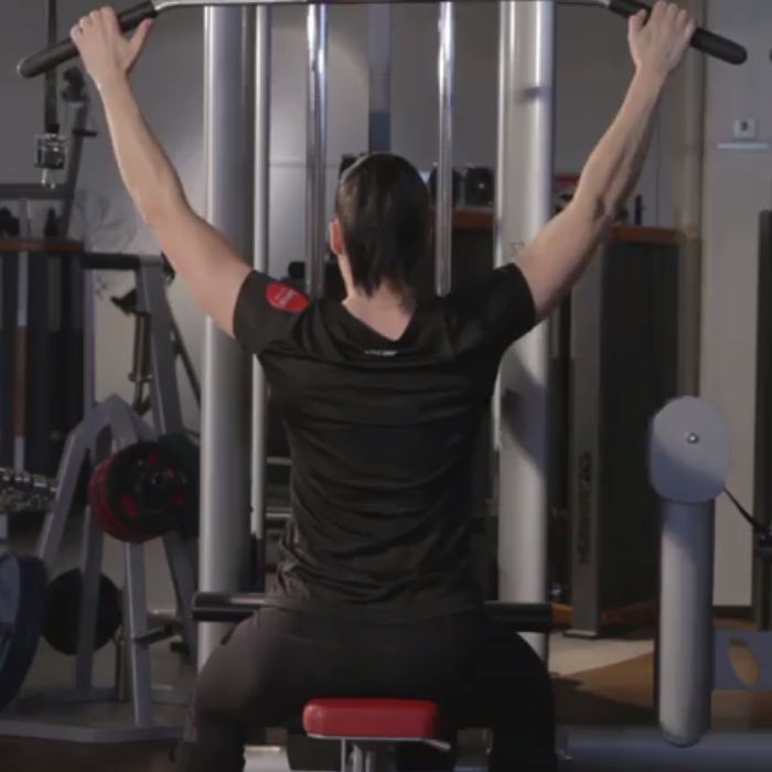 Ota hieman hartioita leveämpi myötäote taljasta. Nojaa ylävartalo hieman takakenoon, selkä suorana, vatsa tiukkana. Paina ensin suorin käsin hartiat alas ja souda kyynärpäät alaviistoon rutistaen lapaluut yhteen ja alas. Taljakahva laskeutuu noin leuan tasolle. Selkä heijaamatta.