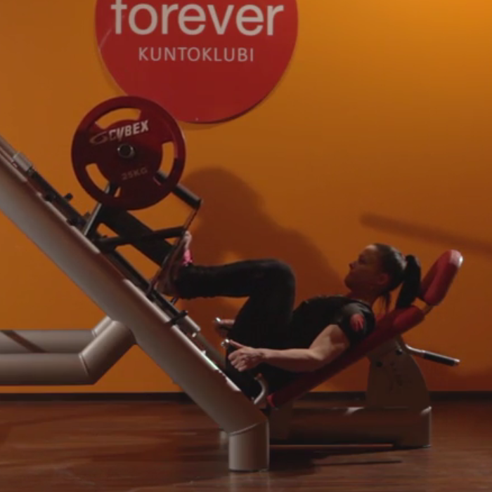 Tee jalkaprässi ja polven ojennus -liikkeet supersarjana. Tee molemmat liikkesarjat putkeen ilman taukoa. Sitten lepää hetki ennen uuden supersarjan aloittamista.